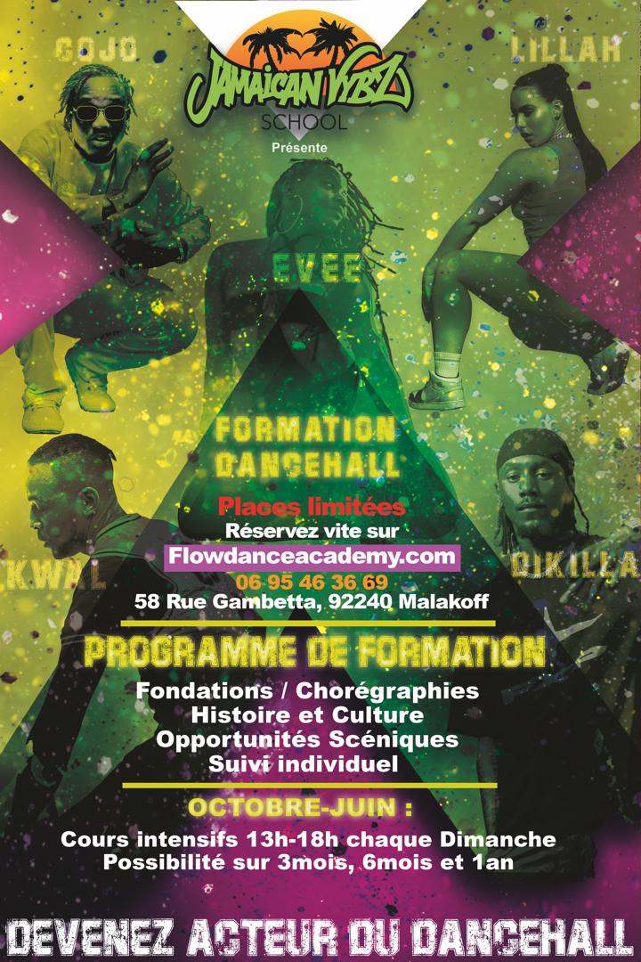 La Jamaican Vybz School revient pour une nouvelle saison avec sa formation Dancehall unique en France ! De octobre à juin, retrouvez un programme intensif et complet pour plonger au cœur de la culture jamaïcaine et développer vos compétences de danseur·se.